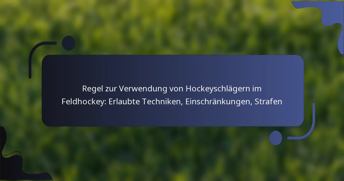 Die Verwendung von Hockeyschlägern im Feldhockey umfasst verschiedene Techniken, an die sich die Spieler während des Spiels halten müssen. Das Verständnis dieser Techniken ist entscheidend für ein effektives Spiel und die Einhaltung der Regeln.