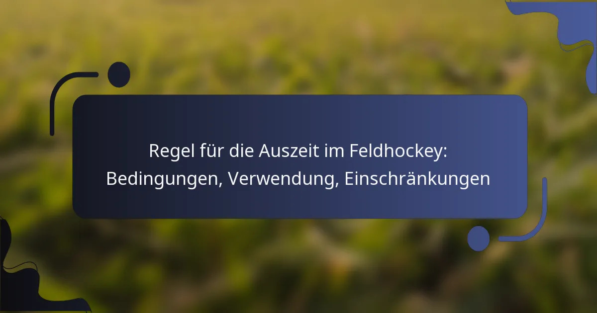 Die Auszeitenregel im Feldhockey hat spezifische Einschränkungen, die Spieler und Trainer verstehen müssen, um sie effektiv zu nutzen. Typischerweise dürfen Teams eine begrenzte Anzahl von Auszeiten pro Spiel beantragen, und Missbrauch kann zu Strafen führen, die das Spiel beeinflussen. Das Verständnis dieser Bedingungen kann die strategische Entscheidungsfindung während der Spiele verbessern.